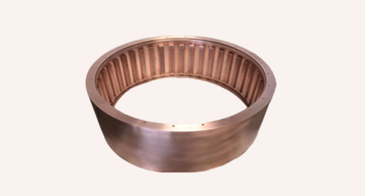 甩帶輪亦稱為速凝銅套、銅輥,用于甩帶機(jī)或甩帶爐上,是制備非晶納米晶軟磁材料和永磁釹鐵硼甩片的核心部件,是快速凝固甩帶法工藝的核心部件,在1400-1700℃的工作環(huán)境下以高效的熱傳導(dǎo)制備出高質(zhì)量的非晶噴帶和釹鐵硼材料,鉻鋯銅是目前最理想的材料之一。